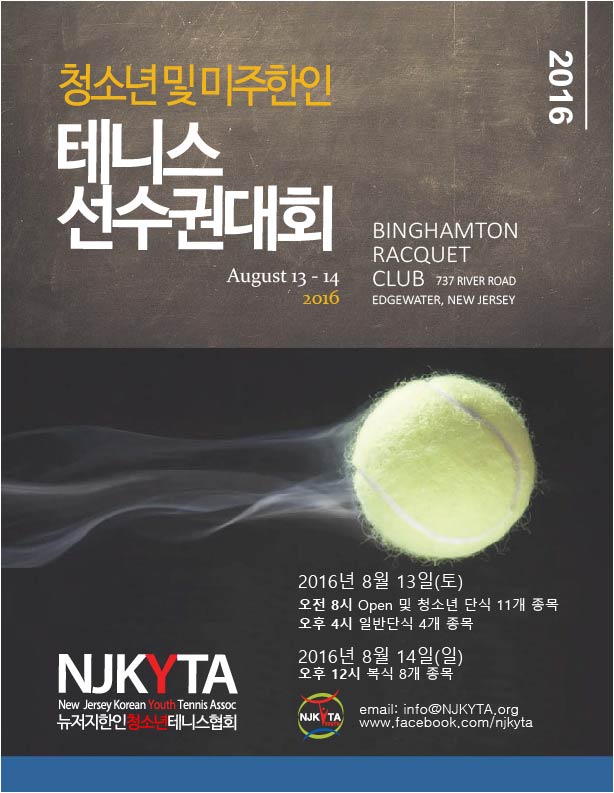 Read More뉴저지대한체육회(회장 서승철)가 주최하고 뉴저지대한탁구협회(회장 김준기)가 주관하는 ‘제6회 뉴저지대한체육회장배 단체대항 탁구대회’가 개최된다. 뉴저지 팰팍에 있는 뉴저지한인탁구장(411 12th St.)에서 이달 12일 오후 1시부터 8시까지 열리는 이번 대회는 뉴욕과 뉴저지 일원 선수 뿐 아니라 보스턴과 메릴랜드 등 동북부 지역 선수 60여명이 참여해 열띤 경쟁을 펼친다. 협회는 대회 전날인 11일까지 참가신청을 접수 받고 있다. 대회는 한인이면 누구나 참여할 수 […]